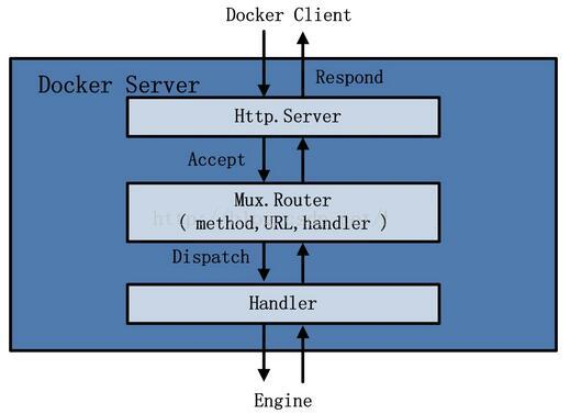 创建完mux.Router之后,Docker将Server的监听地址以及mux.Router作为参数,创建一个httpSrv=http.Server{},最终执行httpSrv.Serve()为请求服务。