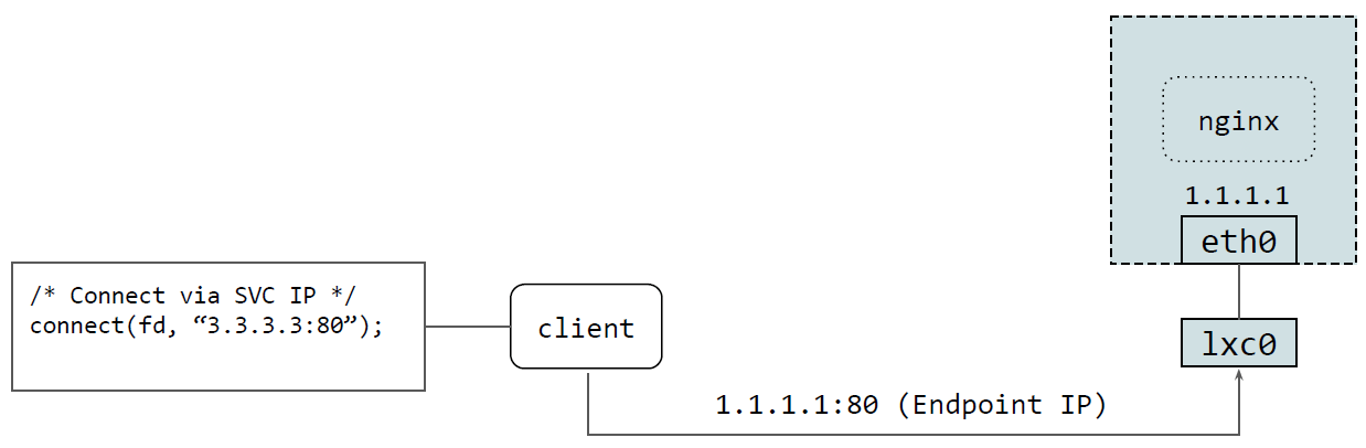 对于 ClusterIP,我们在 BPF 里拦截 socket 的 connect 和 send 系统调用;