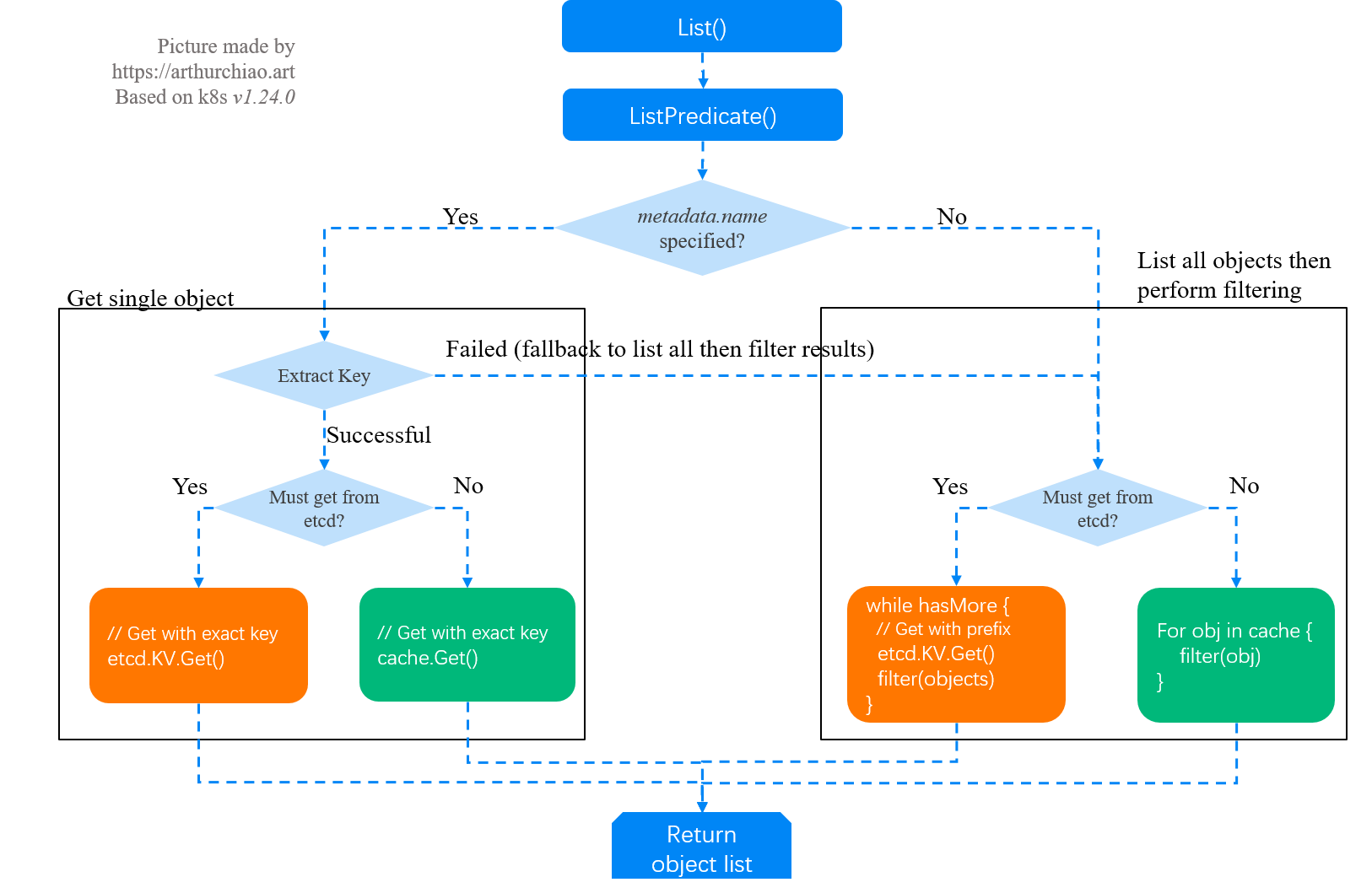 limit/continue), - 所以,apiserver 是从 etcd 拉全量数据,然后在内存做过滤,开销也是很大的,后文有代码分析。